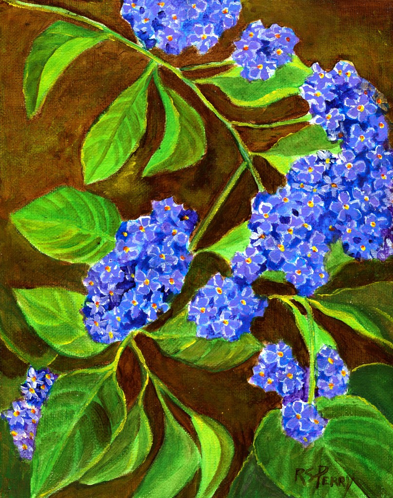 I love this plant! Mine has been growing in a pot for several years, and covers itself with blue flowers all summer. I have read that the plant is toxic, but I am apparently not allergic to it, because I have noticed nothing. This is the first time I have painted it. For further information, click here.